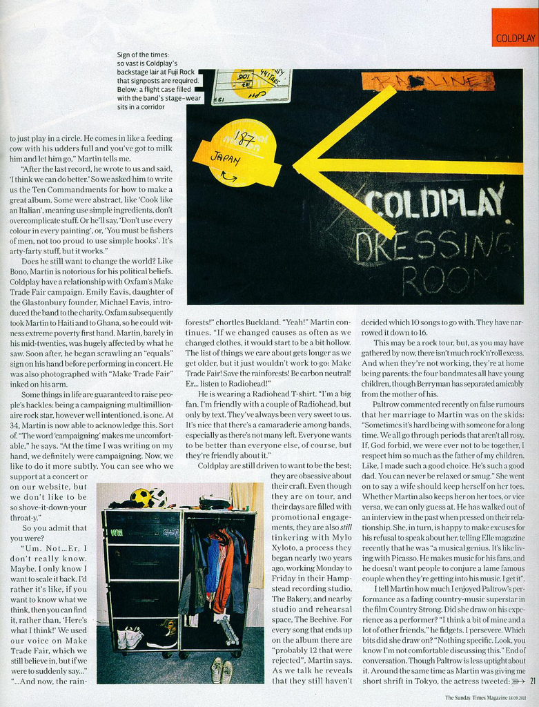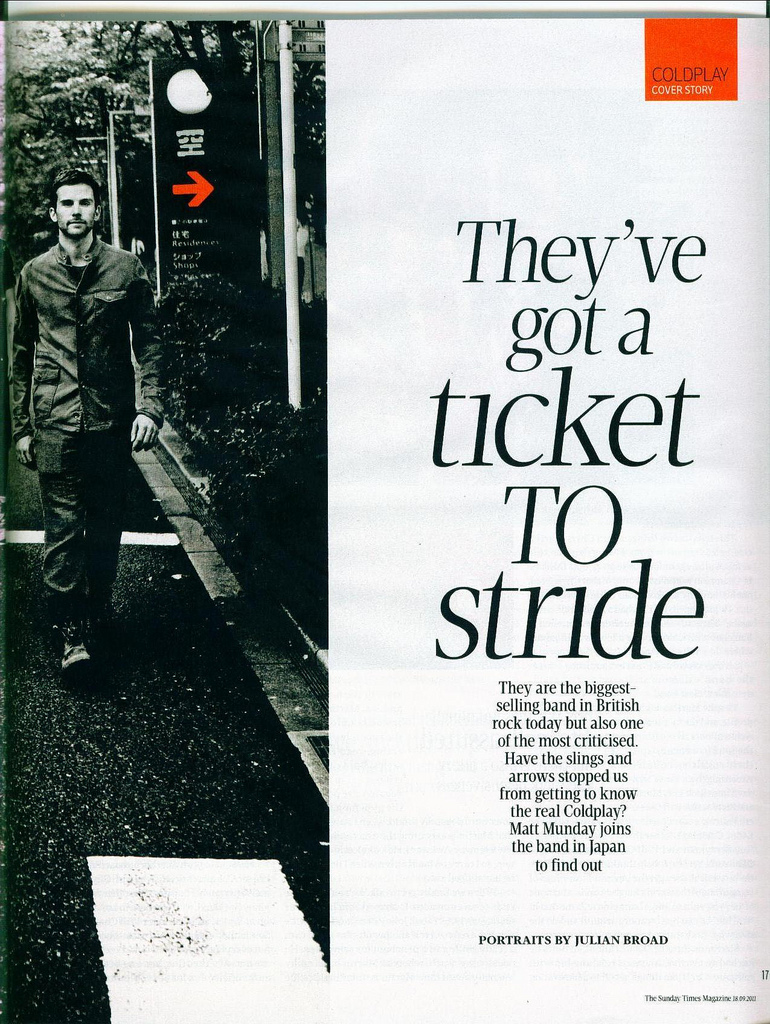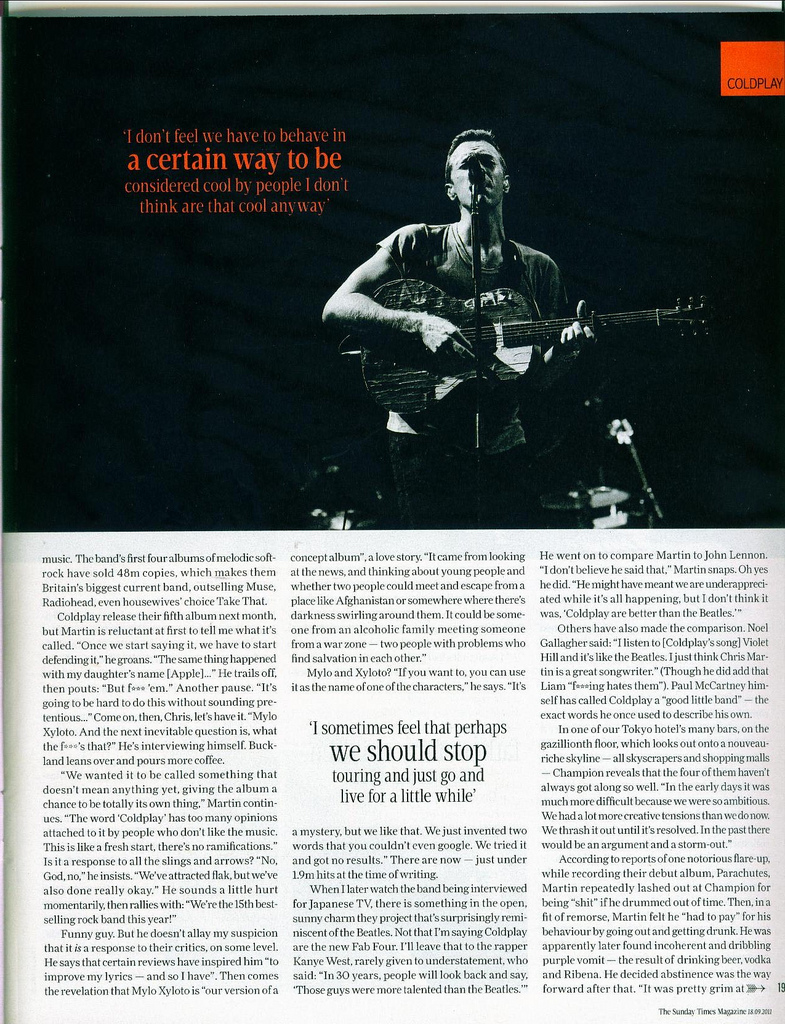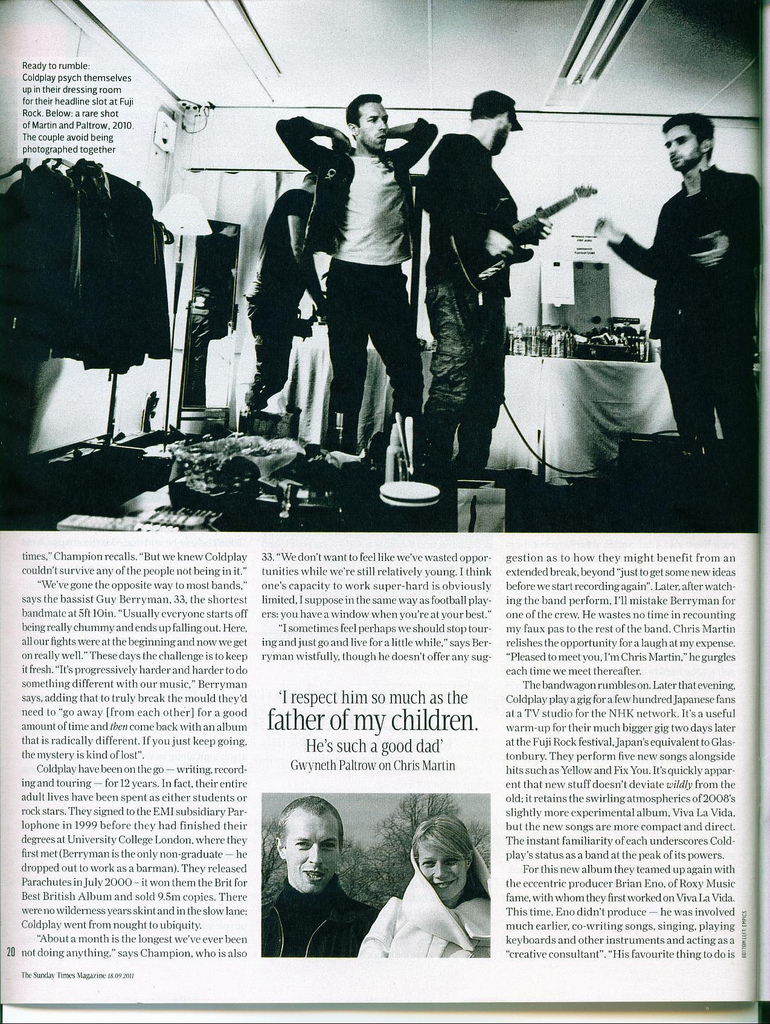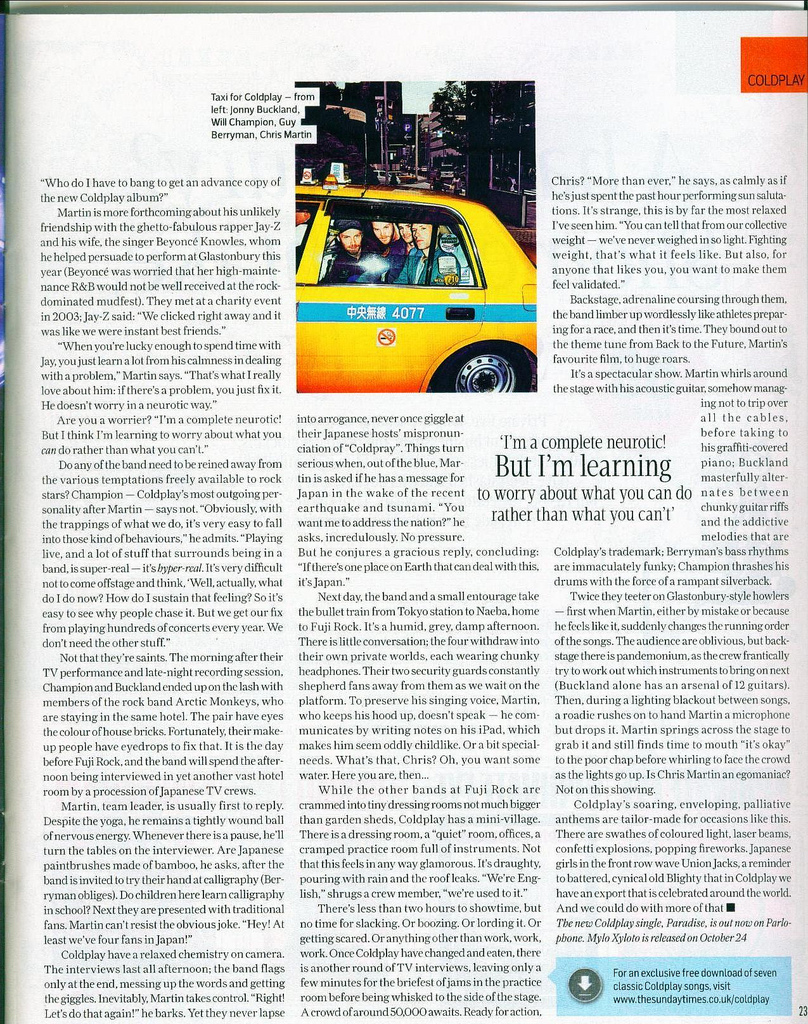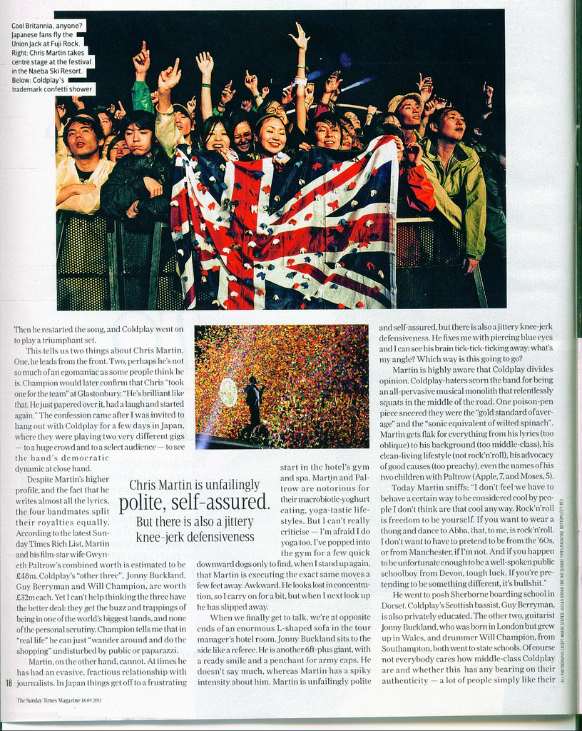 Excelente artigo que o periódico Sunday Times fez com o Coldplay durante sua passagem pelo Japão:
