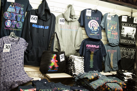 Diz a lenda, que em 2010, tanto no Rio de Janeiro como em São Paulo, a banda trouxe seu pequeno “shop” de produtos oficiais que você poderia levar da turnê Viva la Vida. Eu particularmente não encontrei, talvez por causa da multidão, não sei. Em outros países existem sortudos que conseguiram levar “tour Books”, camisetas, entre outras coisas.