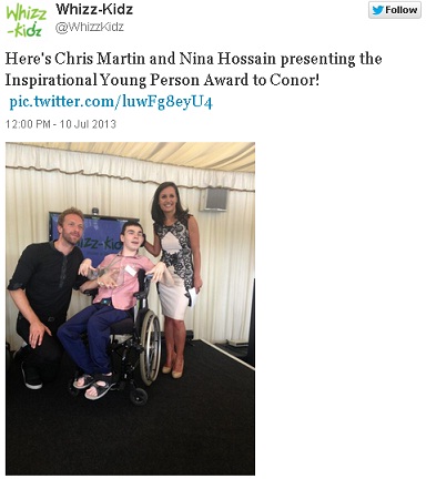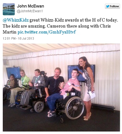 Ruth Owen, diretora executiva da Whizz-Kidz, disse: “Estamos honrados por ter recebido o apoio e a presença de Chris Martin e do primeiro-ministro. É importante celebrar o trabalho duro que toda uma comunidade faz com muita dedicação para auxiliar jovens com deficiência. Os prêmios de hoje demonstram o quanto jovens com deficiência tornam-se modelos fantásticos para outros jovens que passam pela mesma particularidade.” E completou: “Whizz-Kidz muda a vida de crianças com deficiência no Reino Unido, com práticas de aconselhamento, disponibilidade de equipamentos de mobilidade e o maior benefício, fornecendo independência”.