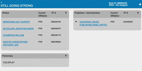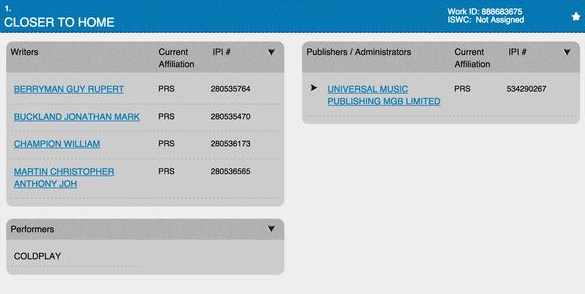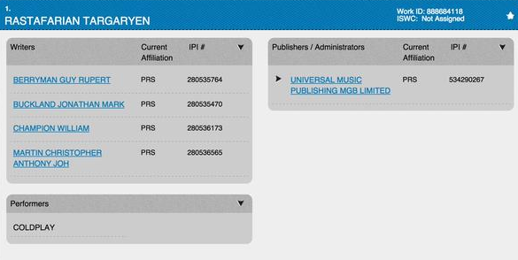 Depois de cações como “Lamhein” e “On My Way Home” serem registradas, agora foi a vez de seis novos títulos aparecerem no banco de dados do Coldplay na ASCAP. Compostas pelos quatro integrantes da banda, elas são: “Closer To Home”, “I’m a real bastard”, “Voldemort”, “Red Wedding”, “Rastafarian Targaryen” e “Still Going Strong”.